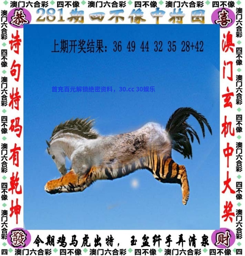 281期:今期鸡马虎出特,玉盆纤手弄清泉开羊47准